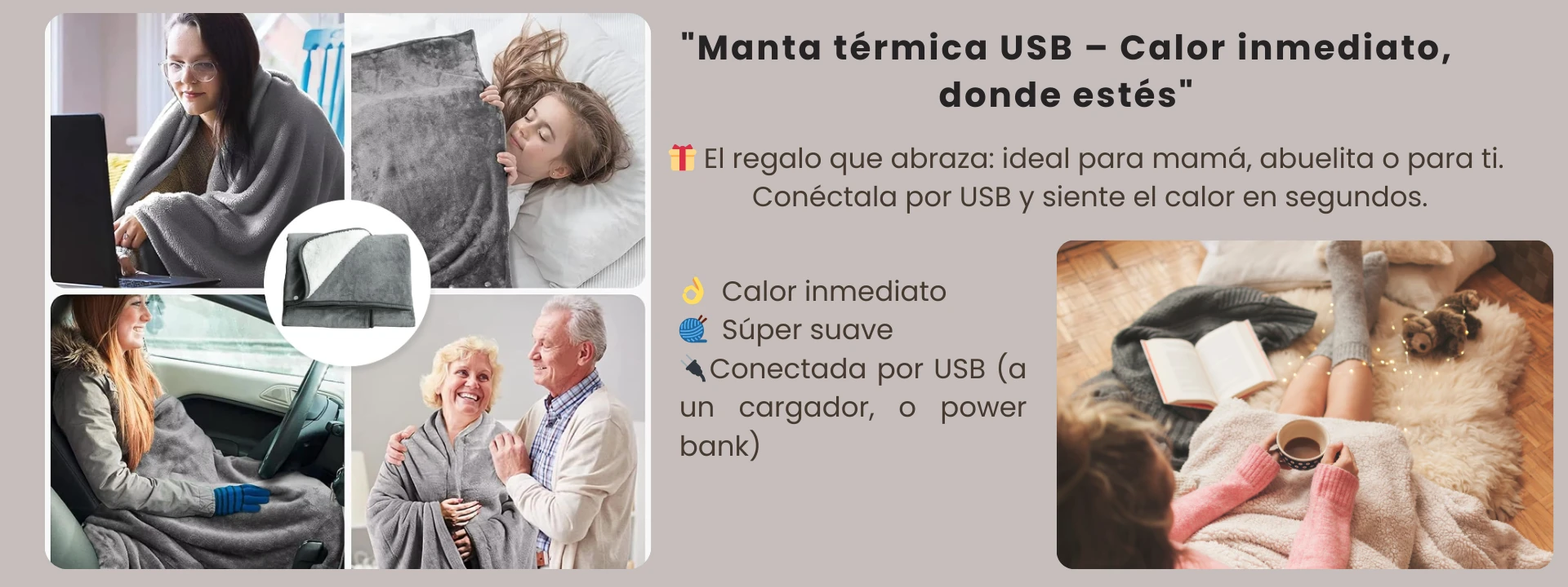 ✅Con esta capa/manta térmica con conexión USB, te mantendrás abrigada de forma inmediata, segura y sin gastar en electricidad.